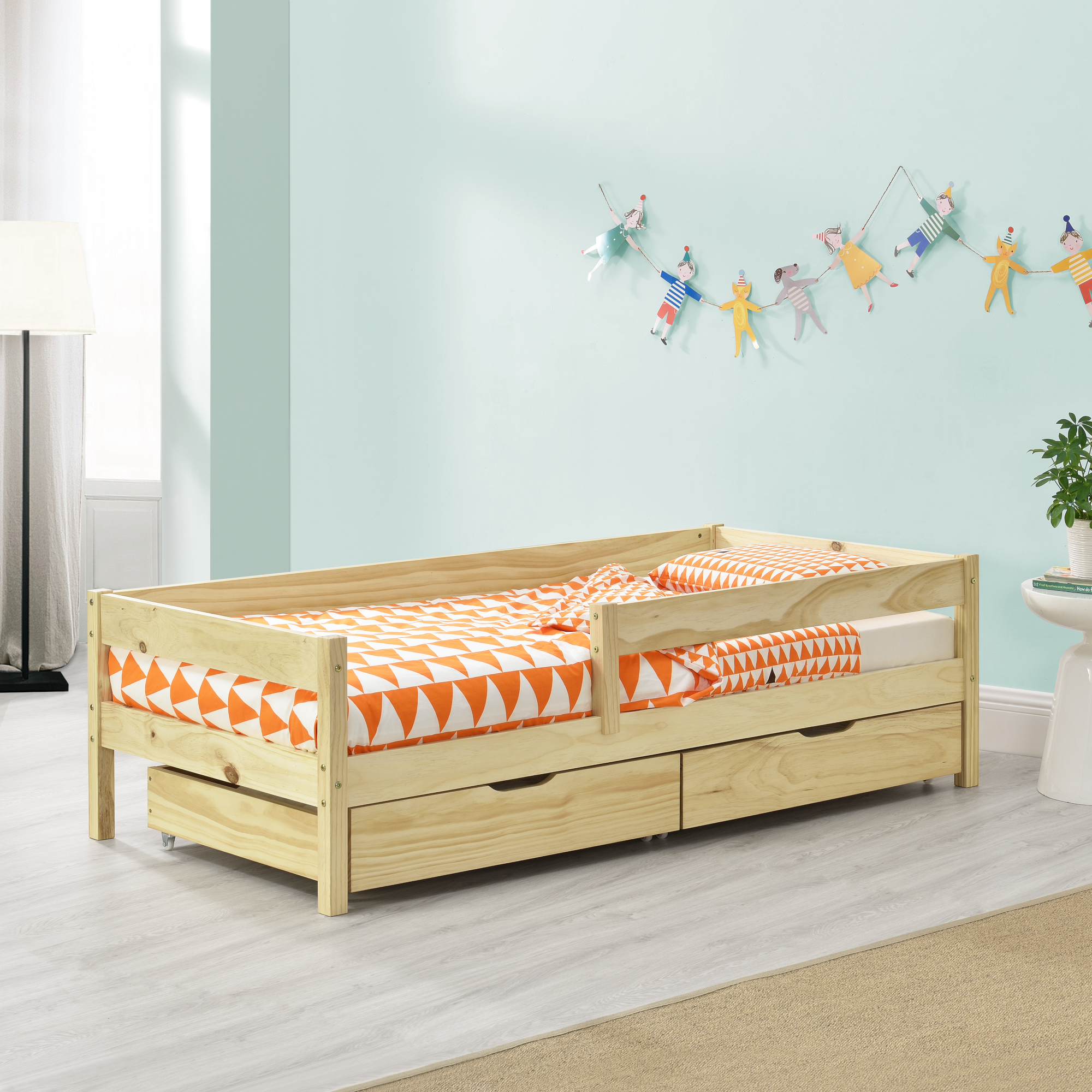 Cama Para Ninos De Pino 90x200cm Con 2 Cajones Para Almacenar Proteccion Natural Ebay